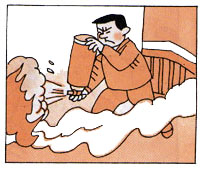 家 用 电 器 起 火, 要 先 切 断 电 源, 然 后 用 毛 毯、 棉 被 覆 盖, 使 其 窒 息 灭 火, 若 仍 然 不 熄 灭, 再 用 水 浇。 |  |