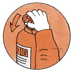 不 要 将 灭 火 器 的 盖 与 底 对 着 人 体, 防 止 盖、 底 弹 出 伤 人。 |  |